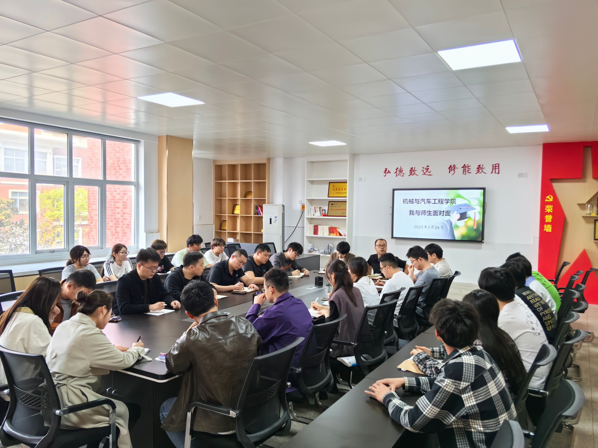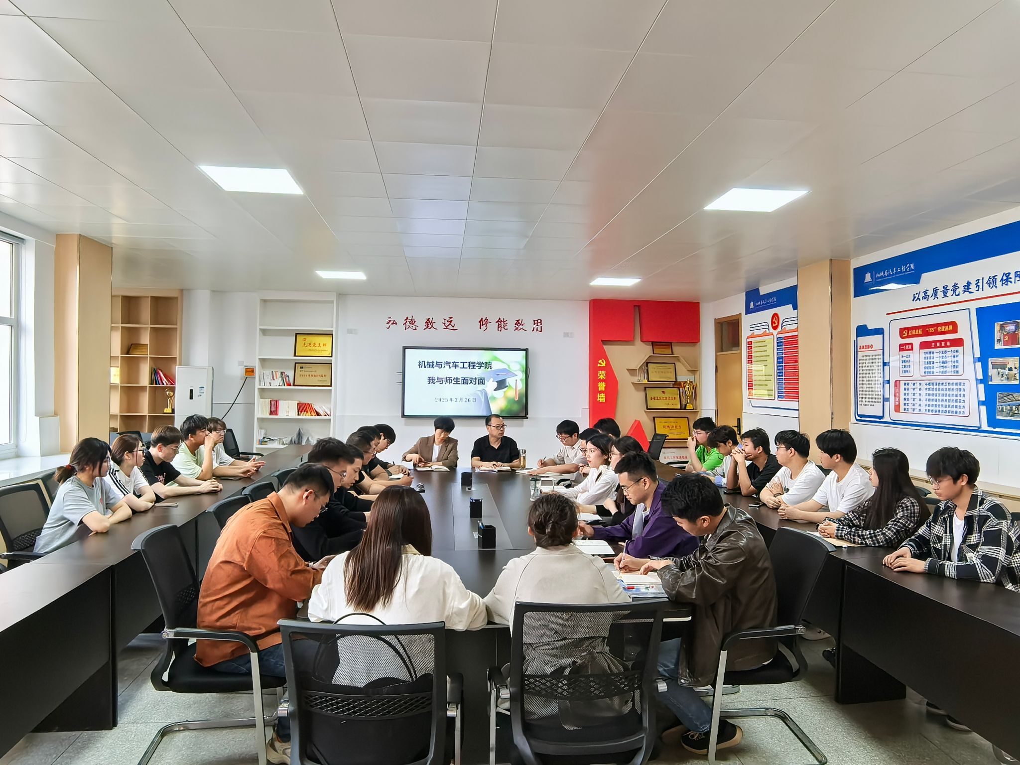 3月26日下午,机械与汽车工程学院于5210会议室召开“我与师生面对面”座谈会,院长杨章林,党总支副书记吴佳佳,近两年新入职教师和24级学生代表参会。