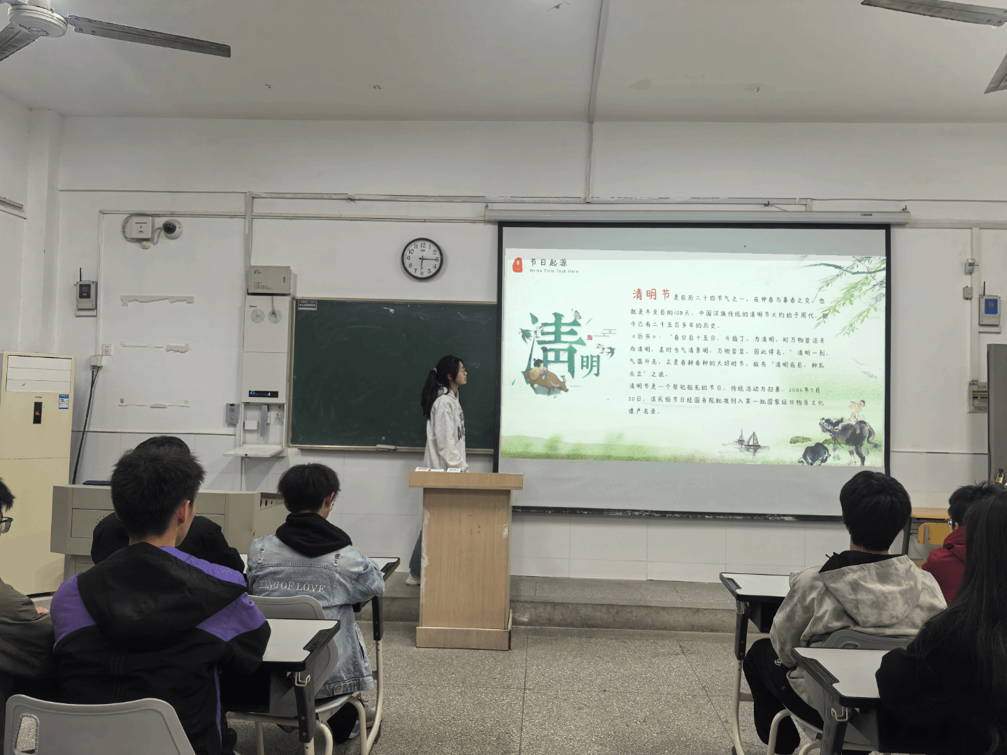 活动期间,大一各班团支书借助多媒体详细讲解了清明节的历史渊源、传统习俗以及文化内涵,使同学们对清明节有了更加全面和深入的了解。主题班会活动以清明节为契机,用图文、影像再现先烈就义场景,让团员们深刻感受先辈的崇高精神。通过讲述革命先烈的英雄事迹,引导学生们深刻铭记历史,珍惜来之不易的幸福生活。
