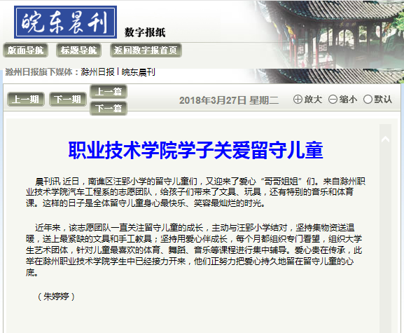 皖东晨刊报汽车系开展关爱留守儿童志愿活动