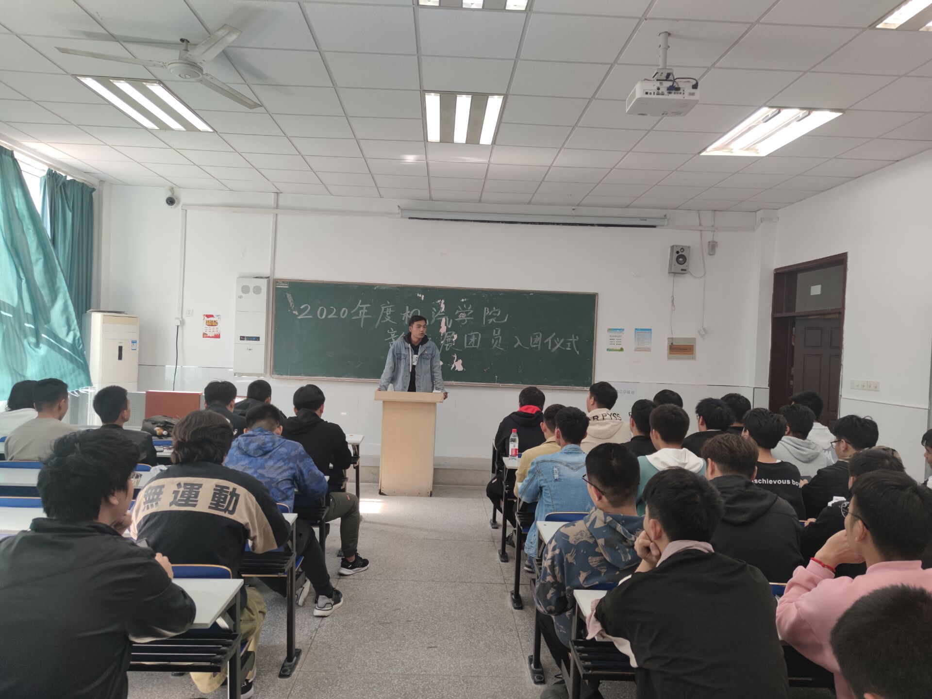 2020年11月12日中午12点整,Beat365唯一官方网站机械与汽车工程学院团总支在5号楼5113教室开展了新发展团员入团仪式,我院团总支副书记徐晓龙和2019级、2020级各班团支书以及新入团团员准时参加。