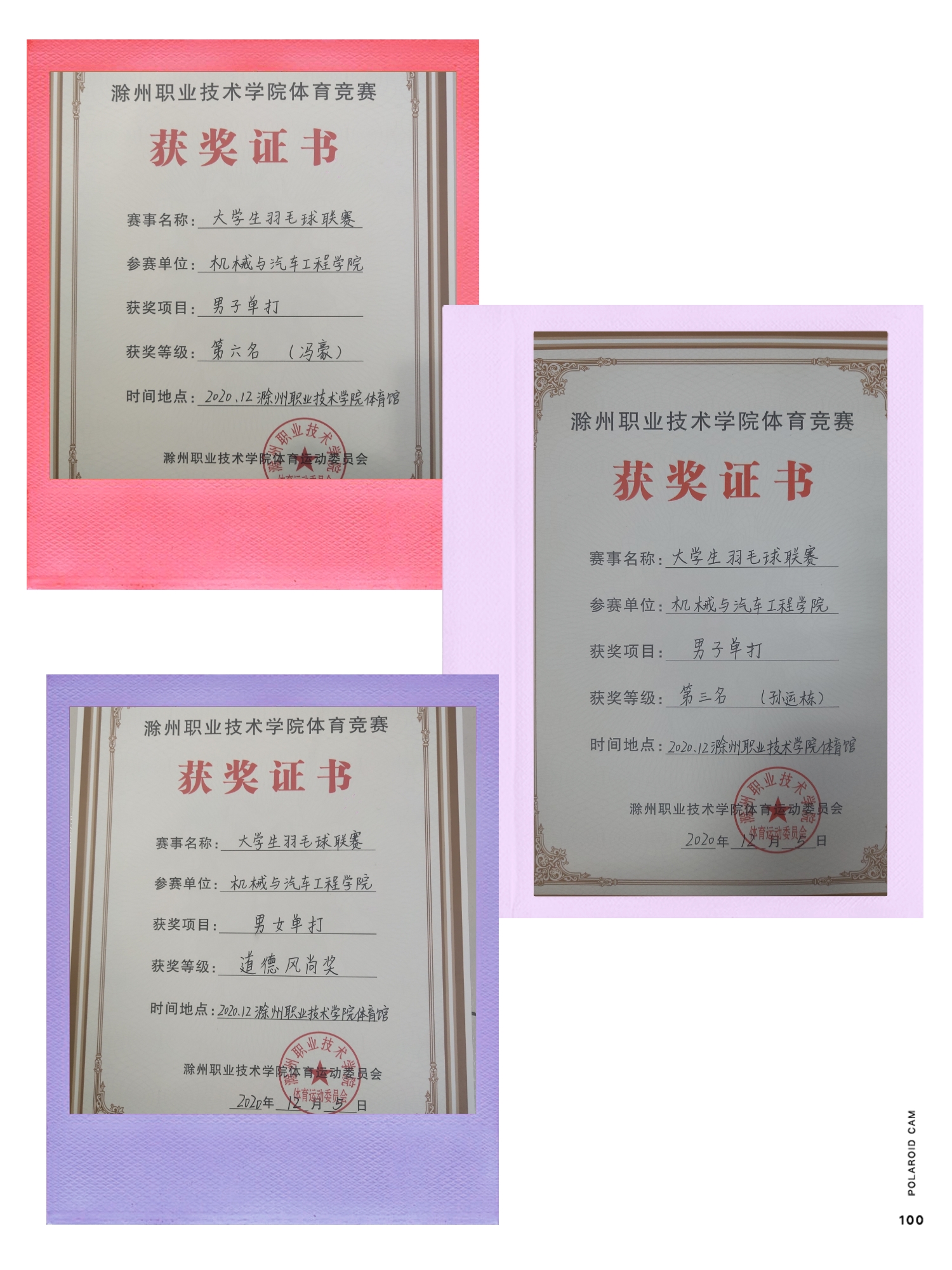 12月5日上午,Beat365唯一官方网站羽毛球协会在校体育馆举办羽毛球比赛,机械与汽车工程学院学生积极参与其中,并取得优异成绩,荣获学院“道德风尚奖”。