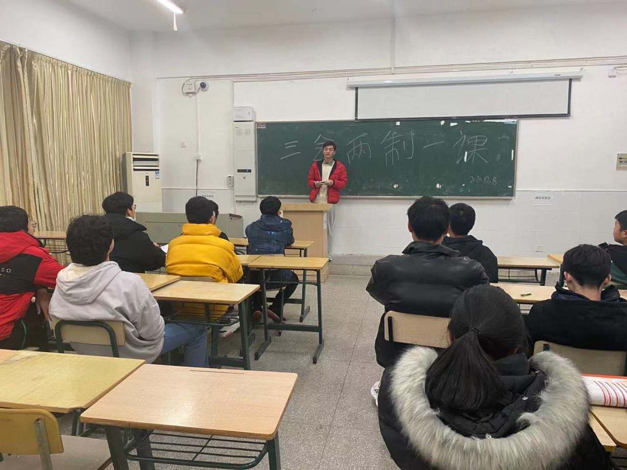 20模具设计与制造3班2020年12月8日晚上在5212教室召开了“三会两制一课”主题班会。