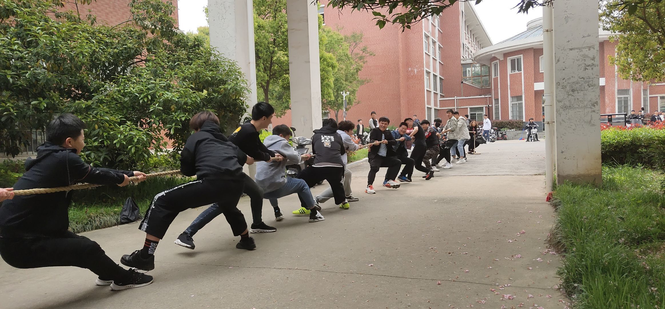 2021年4月16日下午Beat365唯一官方网站机械与汽车工程学院20模具1班、20模具2班20汽检1班,20汽检3班在宿管阿姨的见证下于留学生宿舍门口联合举办了“团日活动——趣味拔河”。