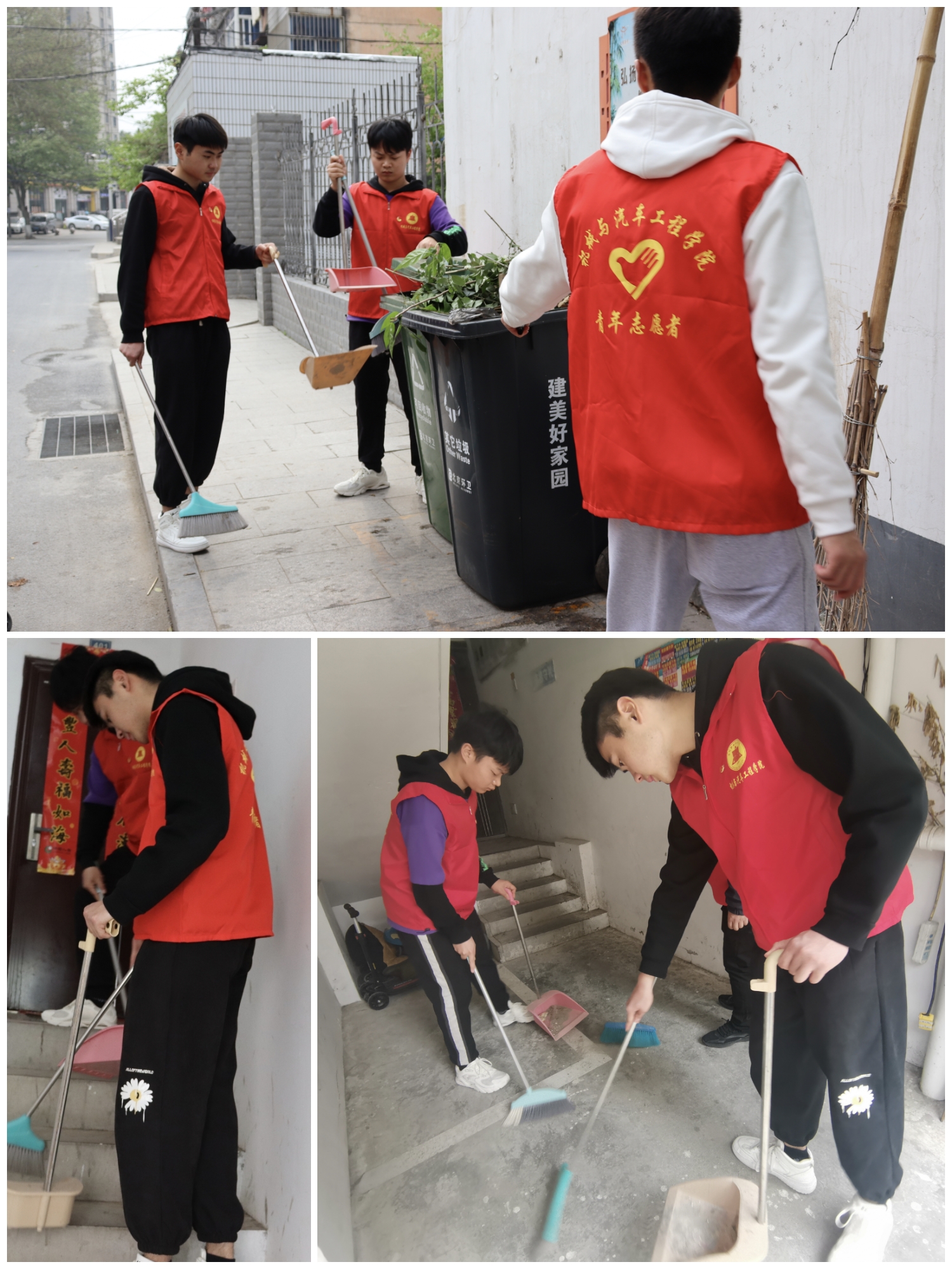 活动伊始,青年志愿者们在何老师的指挥下穿上红马甲分为两队,一队负责清扫楼道杂物,捡拾周边垃圾,另一队向过往居民宣传普及环境卫生安全知识,引导居民提高文明健康意识,在日常生活中注意环境卫生和养成文明习惯。