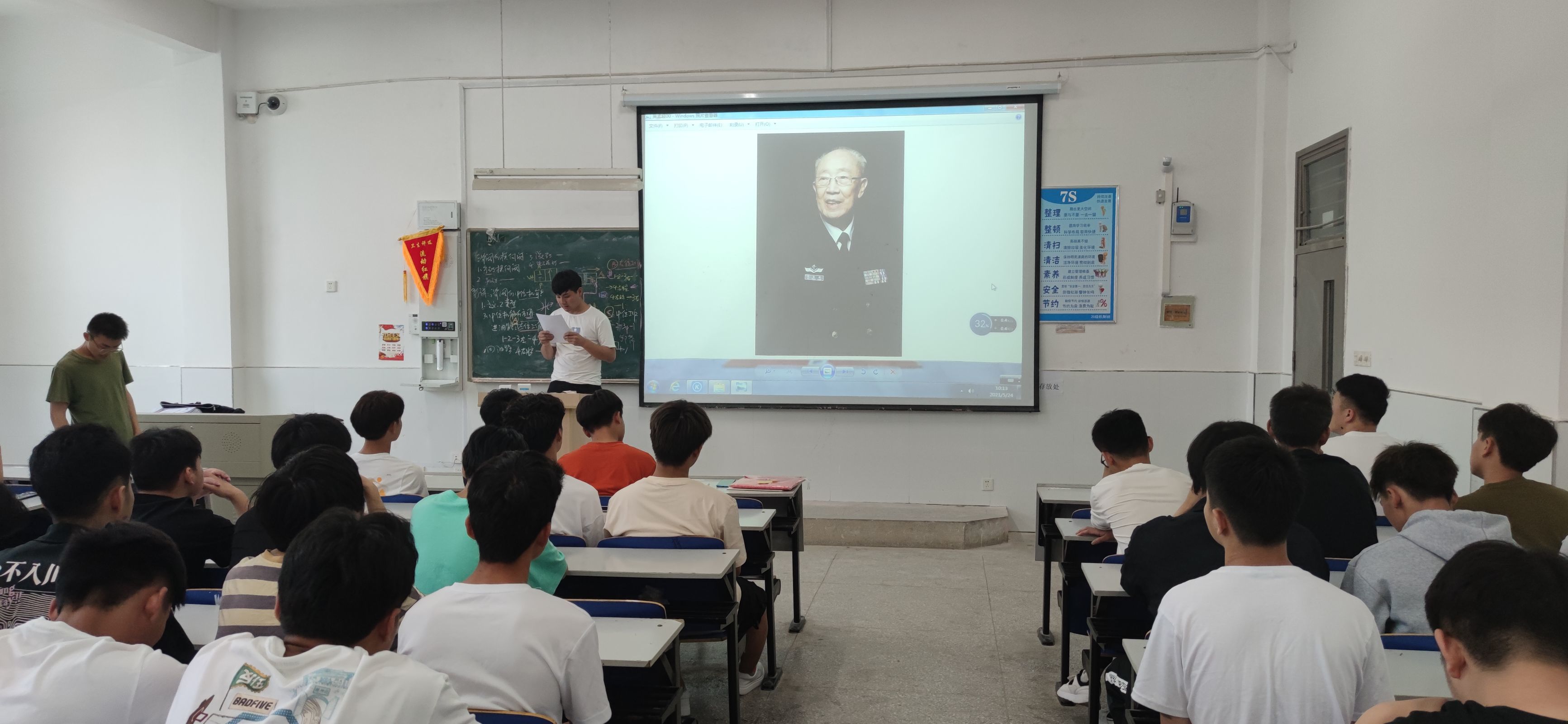 2021年5月24日星期一上午10点10分,机械与汽车工程学院20新能源汽车技术2班团支部和20汽检3班团支部在5104教室开展以袁隆平和吴孟超两位院士的悼念活动。
