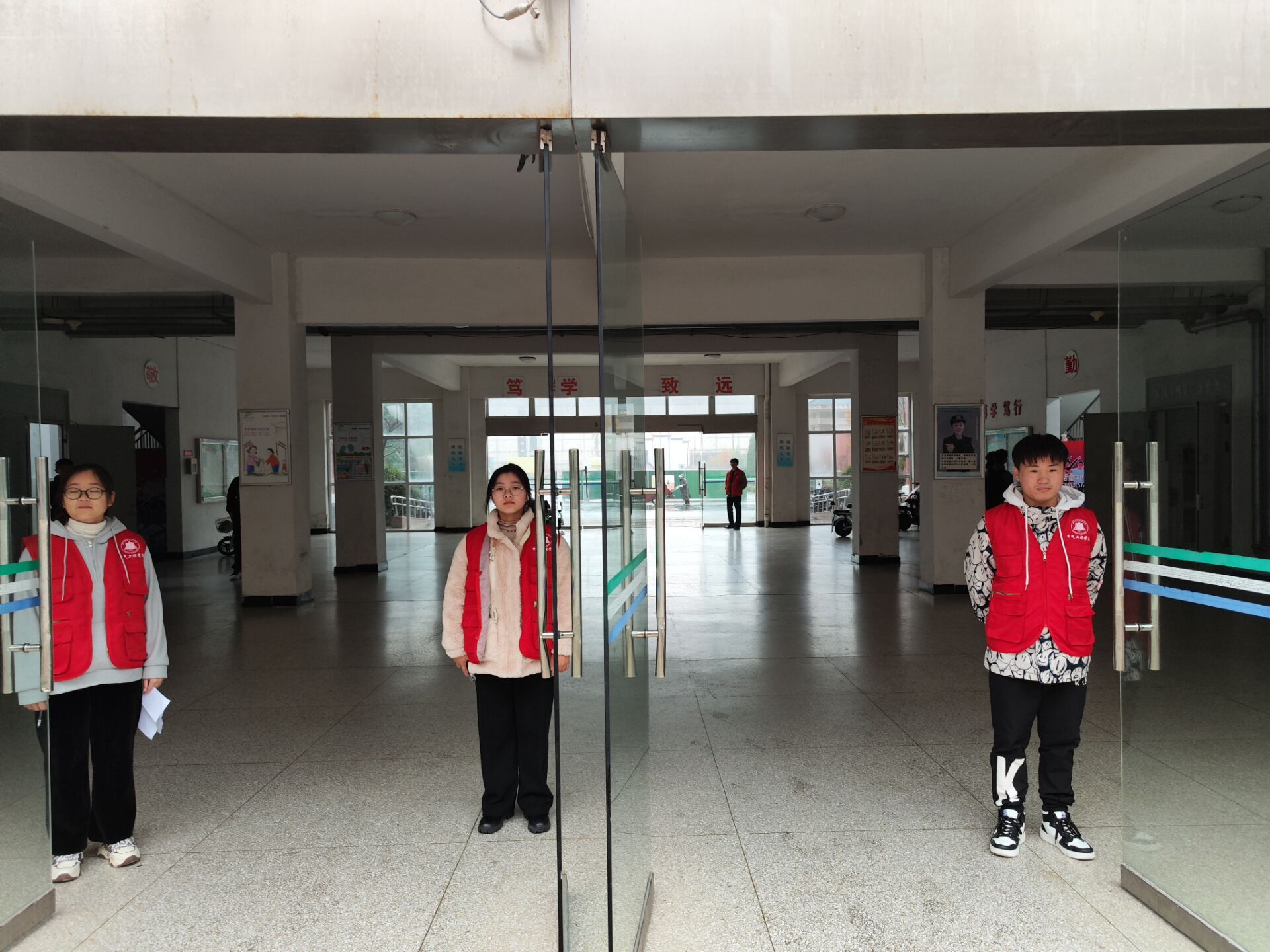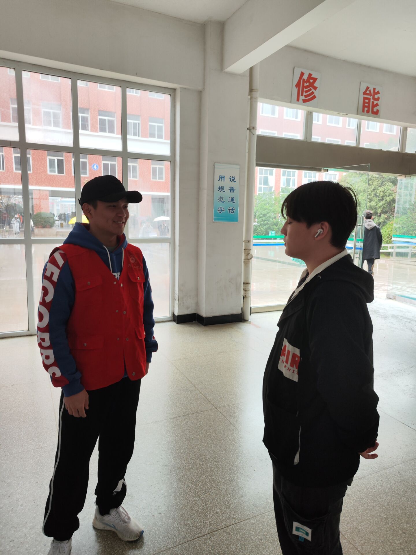 在此次督察工作中,主要由机械与汽车工程学院志愿者在学院各个入口对迟到、带早餐及穿拖鞋进入楼内的不文明现象予以制止并做好工作记录。尽管早晨的天气很是寒冷,但是志愿者们早早的在教学楼门口集合,身着红马甲的志愿者们都以昂扬的精神风貌站在自己的岗位前,为冬季的校园增添了一抹鲜艳的红色。