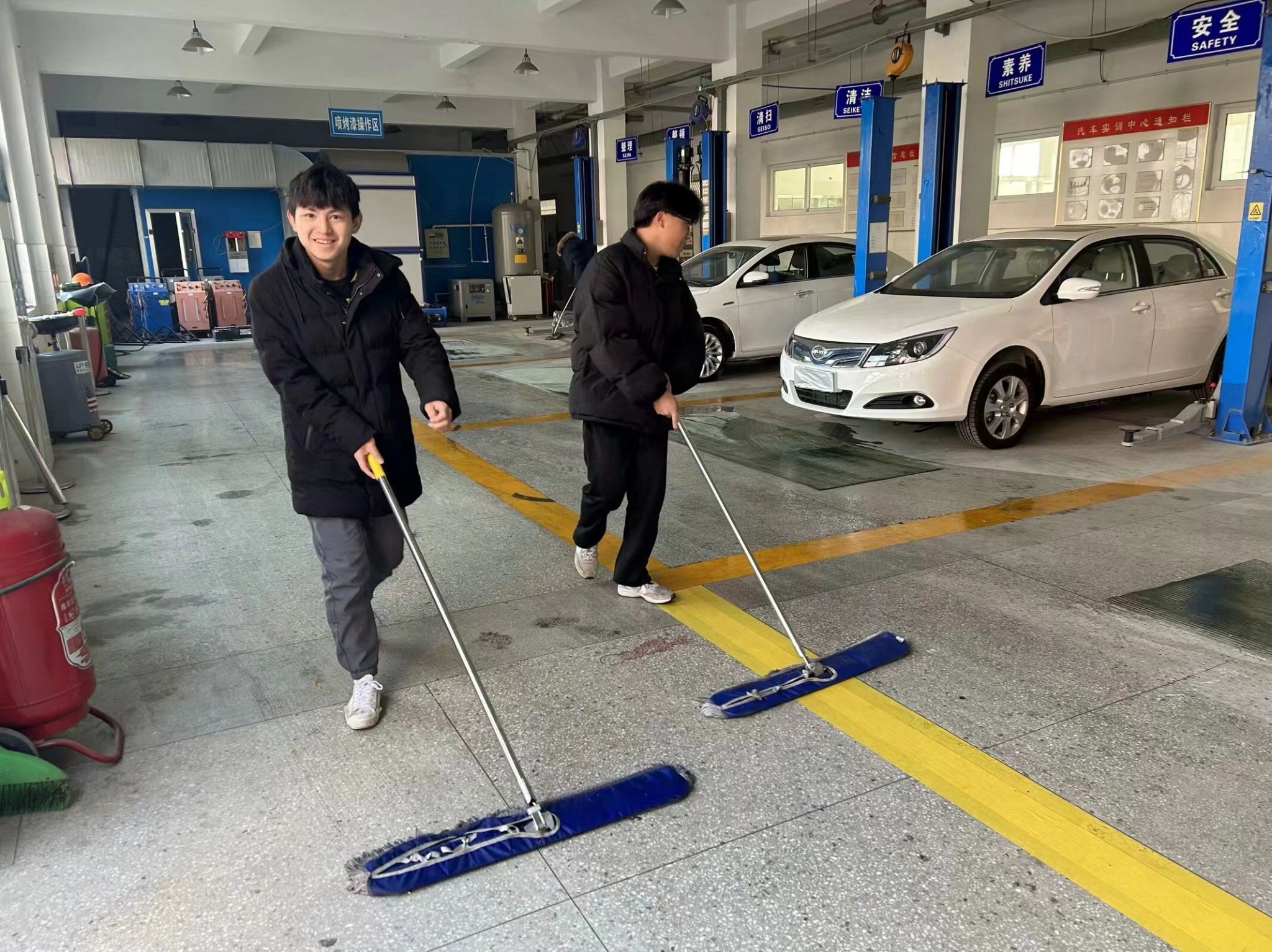机汽学院学子包干协作,对各班包干区域进行清扫实践中。他们手持扫把、拖把等清洁工具,认真清理教室内的每一个角落。大家分工合作,默契配合,不放过任何一个死角。在同学们的共同努力下,教室、实训室焕然一新,变得整洁明亮。