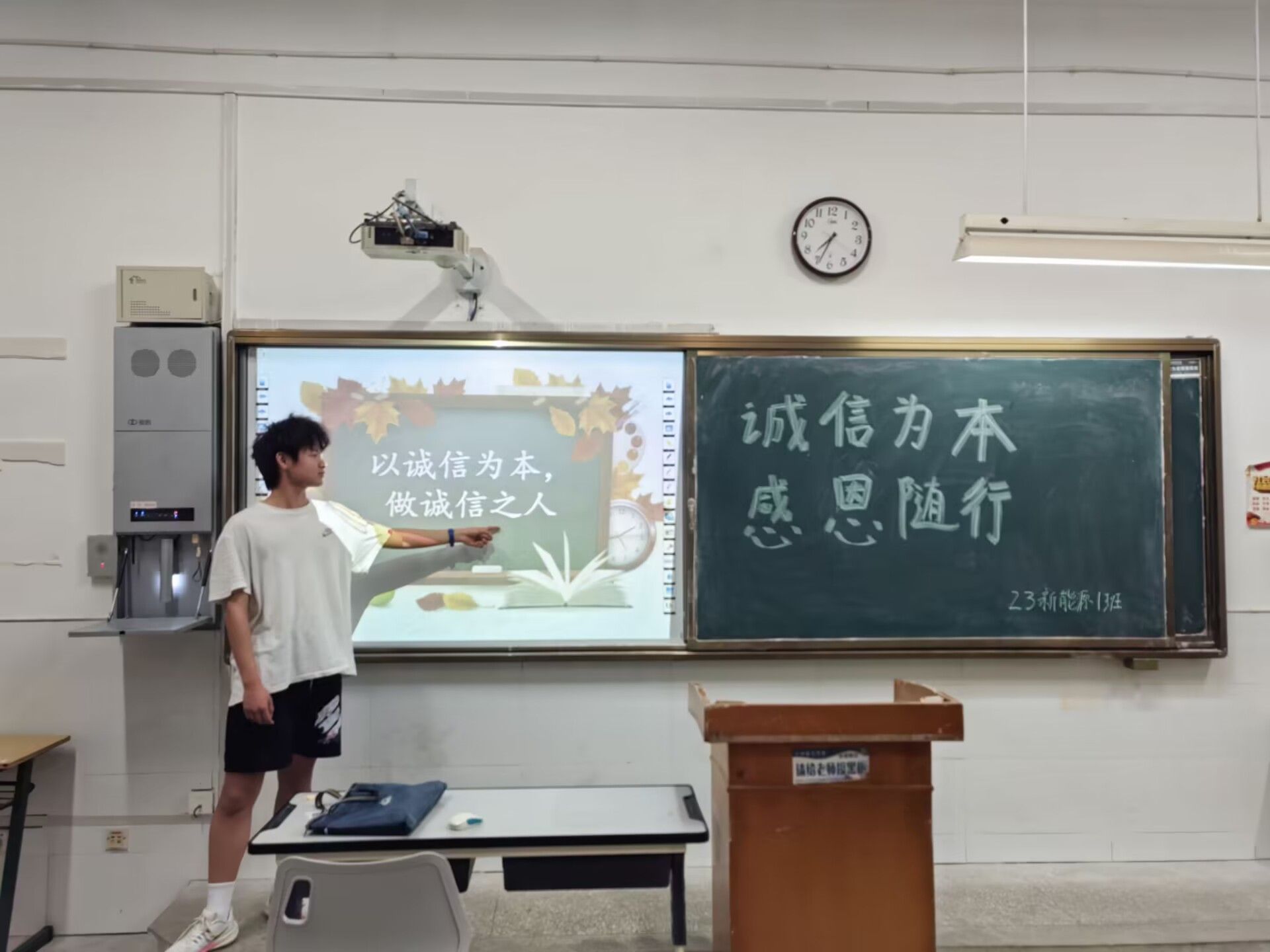 班长首先向同学们阐述了诚信的重要性,强调了诚信作为中华民族传统美德的价值。接着,通过分享“一诺千金”等诚信故事和案例,让同学们深刻体验到诚信的力量,并认识到诚信在个人成长和社会发展中的重要性。