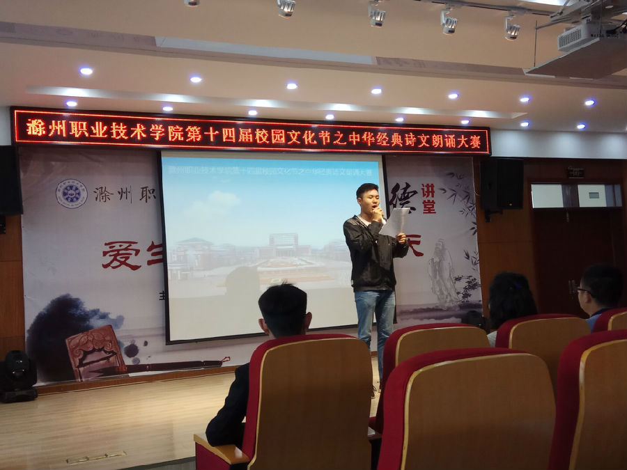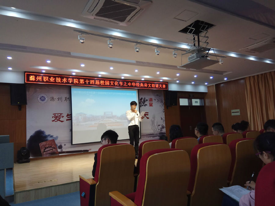 决赛现场,选手们以其铿锵有力的气势,充沛饱满的感情,自信大方的形象赢得老师和同学们的阵阵掌声。比赛内容和形式更是丰富多彩,有的朗读千古传颂的名篇;有的表达思乡之情;还有的歌颂青春,引导同学们追求青春,勇敢拼搏。