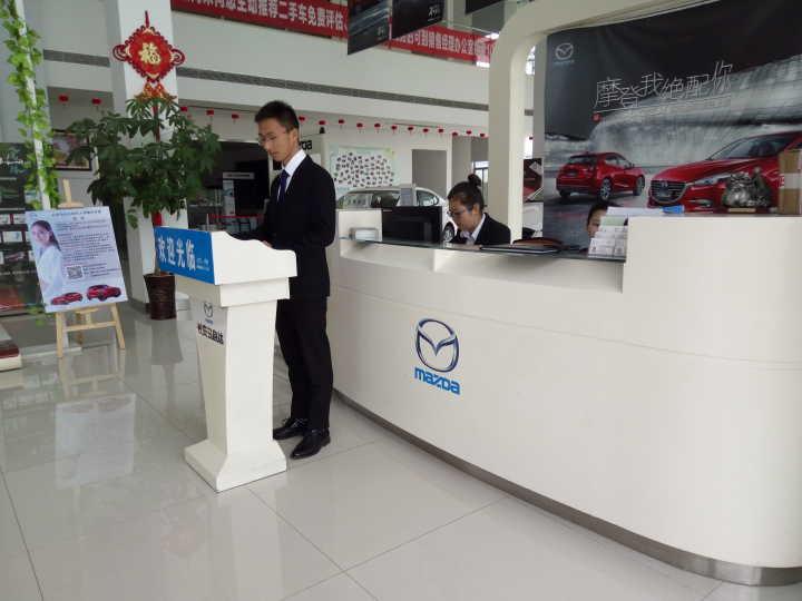 在实习中,我们同学积极的背诵店里汽车的各种参数,如:轴距、轮距、后备箱容积、车子的标配和选配、价格等等。