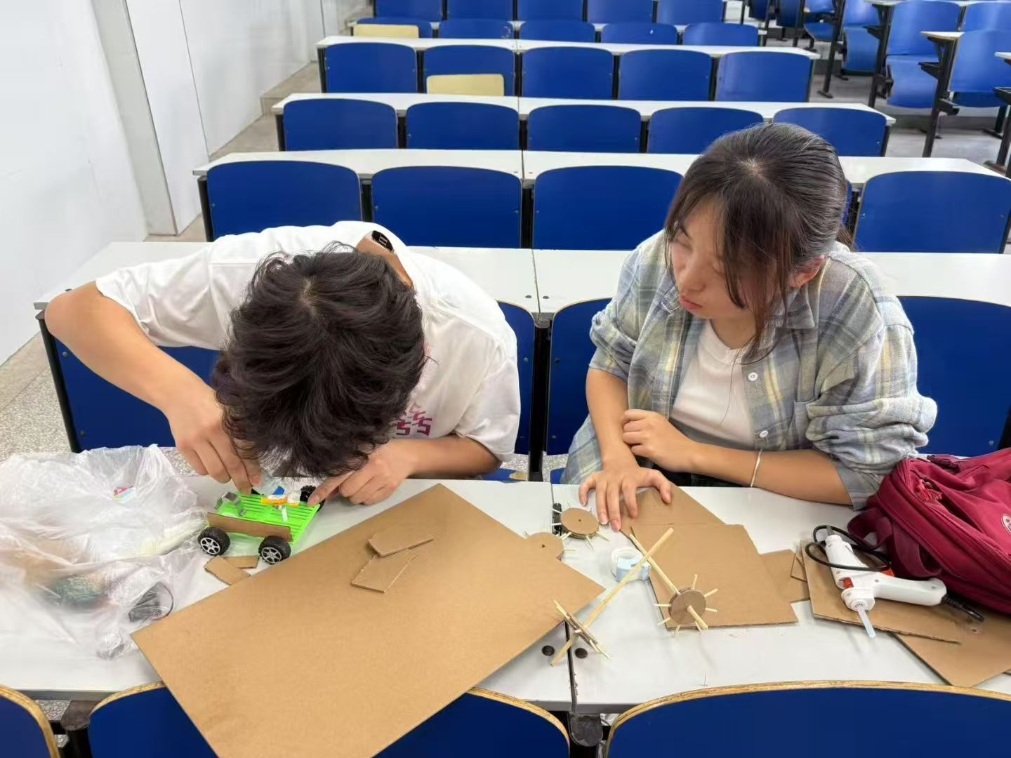 本次艺术节的比赛形式丰富多样,亮点十足。他们在实践中学习传统榫卯结构。剪纸与机械融合的比赛更是别出心裁。学生们巧妙地将剪纸艺术与机械元素相结合,用剪纸艺术生动表现齿轮、发动机等意象,创作出一幅幅独具特色的“科技中国风”作品。奇妙的纸质发动机比赛则强调绿色环保理念。学生们积极响应,充分发挥创意,利用废旧材料制作纸质发动机。