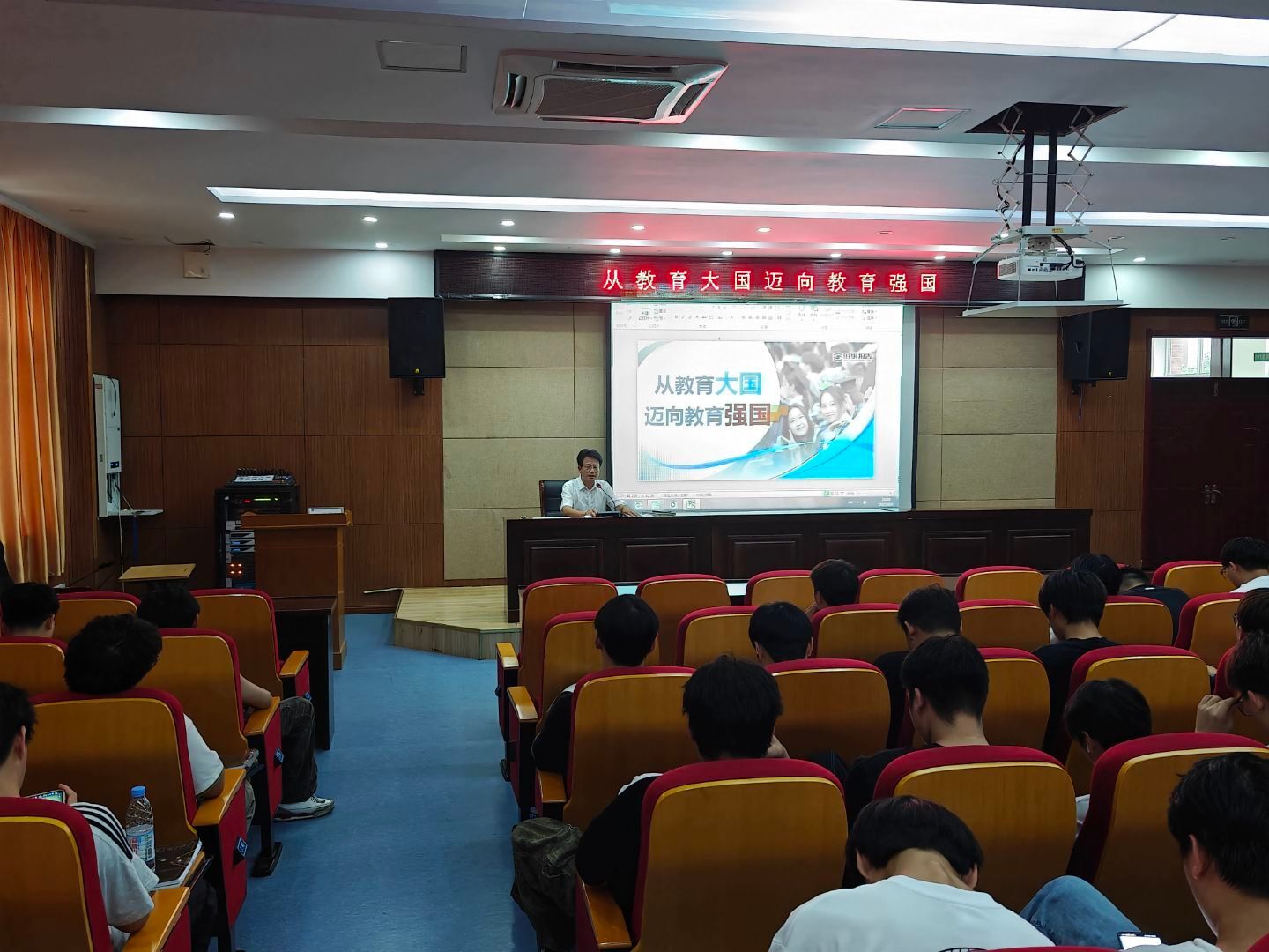 6月6日下午,校党委委员、副校长苏有良在南阶205教室,为机械与汽车工程学院150余名学生讲授“从教育大国迈向教育强国”形势与政策课。