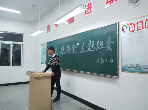 2015年11月3日晚汽车工程系15汽检四班在5313教室召开了“谈学风,建安全”主题班会,同学们积极参与,会场气氛活跃,取得了预期效果。