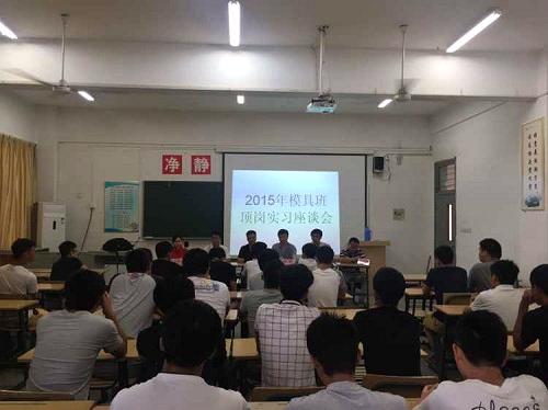 2015年9月1日上午,汽车工程系在5212教室召开了13级模具专业学生顶岗实习座谈会。会议由汽车工程系副主任张信群主持,汽车工程系党总支书记苏有良、宁波职业技术学院阳明学院胡峰主任、宁波舜宇集团模具股份有限公司副总经理董云、辅导员赵晶丽、模具教研室教师李立蔚以及13级模具班全体同学参加了此次座谈会。