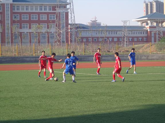汽车系足球队员一路过关斩将进入半决赛。5月12日下午在学校新足球场汽车系对生化系半决赛火热开赛。