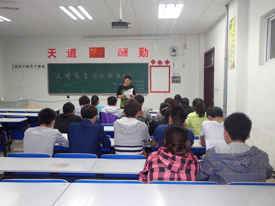 4月16日晚,系部学生会纪检部、新闻部、宣传部、安保部学干进班级进行活动宣传,鼓励大家积极投入宿舍评比活动中来。