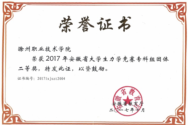 本项赛事由安徽省教育厅主办,合肥工业大学承办。竞赛分本科综合组(国赛)、本科单科组(省赛)和专科组(省赛)。本次大赛专科组共有省内各高职院校277人参加,最终大赛组委会评审出专科组个人特等奖6个、个人一等奖15个、个人二等奖29个、个人三等奖56个。