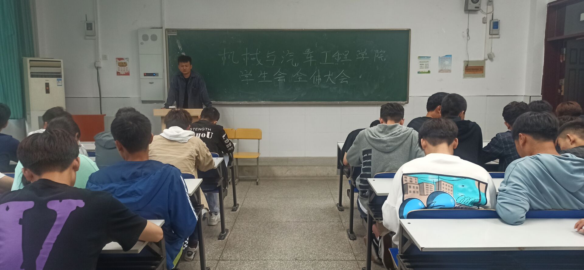 2021年5月13日中午12时,机械与汽车工程学院学生会全体干事在5113教室召开学生会工作会议暨校第17届运动会赛前动员大会,院学生会主席卢宇航主持,学生会各部门学生干事积极参加。