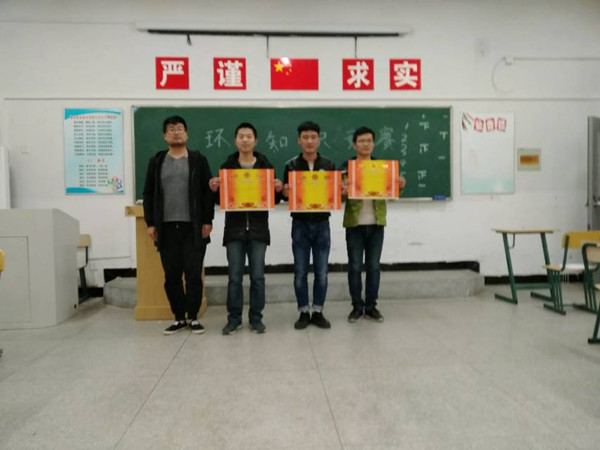赛前志愿者们认真的布置着赛场为接下来激烈的比赛做好准备。晚7:10比赛正式开始,竞赛涉及生态文明基本知识、当前面临环境问题及改善措施等内容,同学们争先恐后的作答,发表自己的见解。经过一番激烈的角逐,16食品营养(2)班及16化工班以优异成绩并列第一。