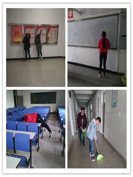 经过详细的安排和部署,各支部有条不紊的开始了清理工作。本次清扫范围主要是教室,走廊的卫生死角及教室外公共设施。参加此次活动的成员们都表现得很积极,不怕脏不怕累,他们忙碌的身影在教学楼里穿梭,形成了一道亮丽的风景。同学们的辛苦劳动没有白费,黑板上的痕迹消失了、教室里的垃圾清除了、公共设施上的灰尘没有了,二号教学楼的面貌焕然一新。
