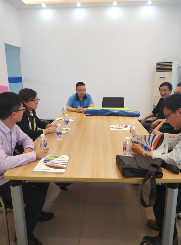 安徽柏拉图涂层织物有限公司的吴总、候主任和王工热情接待了大家。该公司地处滁州市来安开发区,是一家专业生产宽幅PVC涂层布的高新技术企业。产品采用高强涤纶长丝做基布,具有重量轻、强度高、耐腐蚀、耐磨、防水、阻燃等特点,主要用于卡车篷盖布、侧帘布、充气产品(淘气堡、充气艇等)、大型篷房、工业卷门、网格布等产品。