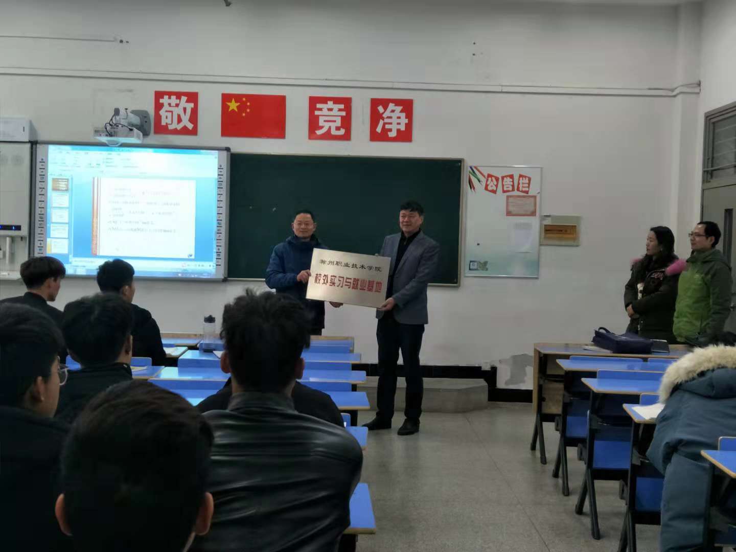 座谈会后,梁建军等带领企业领导参观了气相色谱实验室、液相色谱实验室、荧光和原子吸收光谱室,并在我院2018级建材检测班举行了简短的“校外实习与就业基地”授牌仪式。