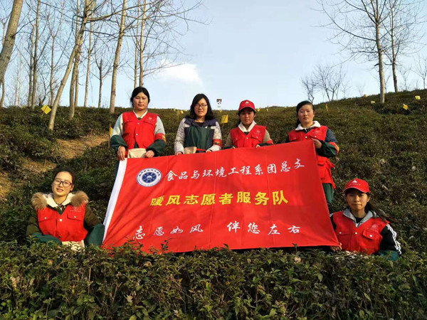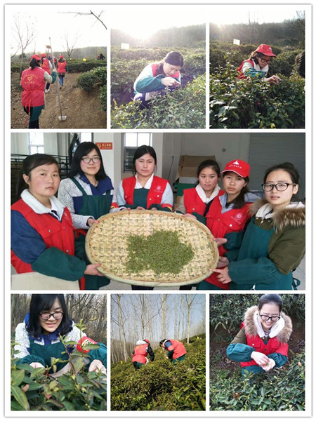 为大力弘扬雷锋无私奉献精神,3月26日,食环系志愿者们在团总支负责人戴缘缘的带领下,与滁州市天使环保协会会长蒋玮女士一道,来到施集大鳖盖有机茶园,开展帮助生活困难茶农采茶的公益活动。