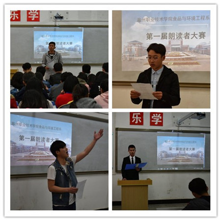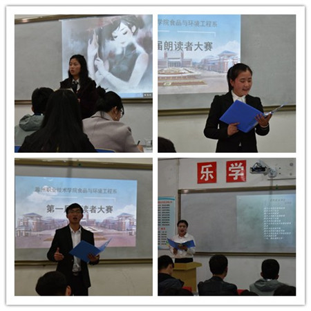 为丰富在校大学生的课余生活,培养学生“爱读书、读好书”的良好阅读习惯,提高学生的综合素质,3月29日下午一点半,食环系学生会学习部主办的第一届朗读者大赛初赛于2111多媒体教室拉开帷幕,由各系学生会主席担任大赛初赛评委。活动现场气氛火爆,吸引近百名观众前来观看。