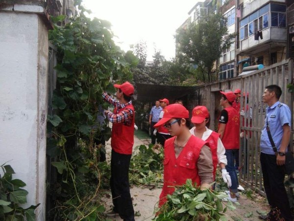 志愿者们在工作人员的带领下,对辖区卫生死角和重灾区进行全面清理。同学们不怕苦、不怕脏,分工明确,干劲十足,整个劳动场面热火朝天且有条不紊。经过一下午的紧张劳动,杂草、垃圾等被清理干净,小区面貌焕然一新。