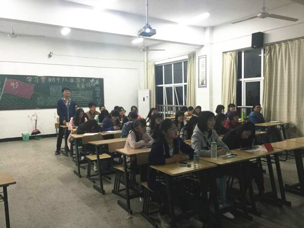 窦允青同学事先准备了一篇较长文章,现场随机选择学员阅读,根据阅读中出现的问题,她逐个予以纠正,并作正确示范。现场学干们表现踊跃,直面自己在普通话方面的种种问题,不少报考普通话的学干更是抓住这个难得机会与站长交流。学干们认真跟读,用心模仿,细心做笔记,在语音知识、发音技巧、朗读技巧等方面得到了一定的提高。