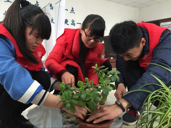 一个寒假,不少办公室绿植因缺少养护面临死亡威胁,志愿者们分赴各办公室,为植物松换土、浇水、分株、清除枯死叶,还为老师讲解日常养护小知识。老师们对此次志愿活动不约而同竖起了大拇指!