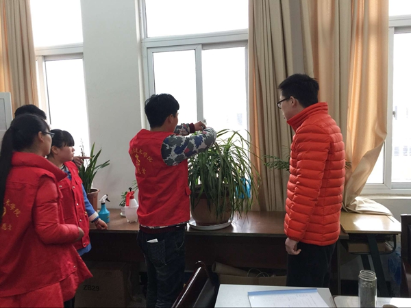 目前义务养护活动仍在火爆预约中,食品系青年志愿者将利用课余时间继续开展,以实际行动践行雷锋精神,以所学专业知识办公室的绿植重现生机。