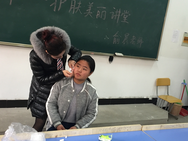 老师人体皮肤组织结构讲起,指导同学们认识皮肤出现问题的根源,并针对不同肤质给出日常护理建议。她说同学们一定要注意调理自己的身体作息以及正确选择护肤品,对避免出现痘痘、粉刺等问题都有很大帮助。