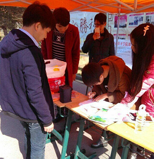 11月28日-29日,食品系学生会社会实践部和青年志愿者分会在5号宿舍楼下举行“冬日有爱.感恩母校”募捐活动。