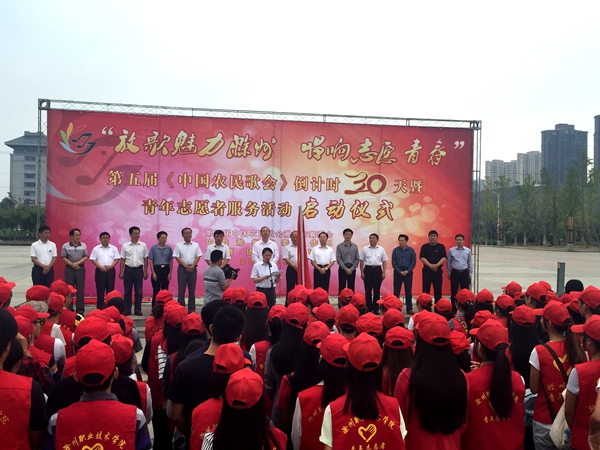 9月15日上午,由第五届中国农民歌会滁州市筹委会、中共滁州市委宣传部、共青团滁州市委承办的,以“放歌魅力滁州 唱响志愿青春”为主题的第五届《中国农民歌会》倒计时30天暨青年志愿者服务活动启动仪式在农民歌会广场举行。我院食品与环境工程系100余名青年志愿者在院团委书记王蓓蓓、系团总支书记张功会及辅导员的带领下参加了启动仪式。