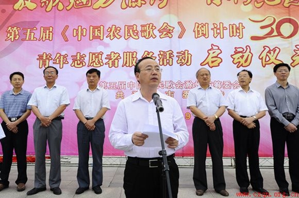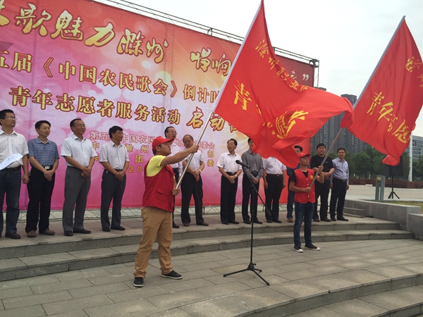 仪式上,张祥安市长和王图强秘书长对志愿者服务队进行授旗。张祥安市长作重要讲话,对志愿者们提出了要求和希望,勉励志愿者把“最美好的微笑献给所有参与和观看农歌会的八方来客,用自己的实际行动为参加农歌会的各界嘉宾留下美好印象,为宣传滁州,服务滁州发展贡献自己的一份力量。”