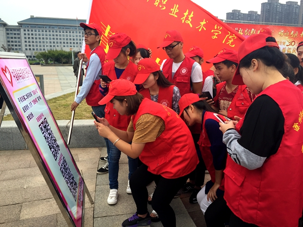 我系青年志愿者们还进行了庄严的宣誓仪式,并使用手机扫描“志愿中国”的二维码,现场注册成为中国志愿者。