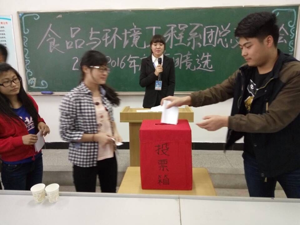 10月20日中午,食品系2015年学生会换届选举大会在2113教室隆重举行,系团总支书记、全体辅导员及全体学生干部参加会议并参与投票。