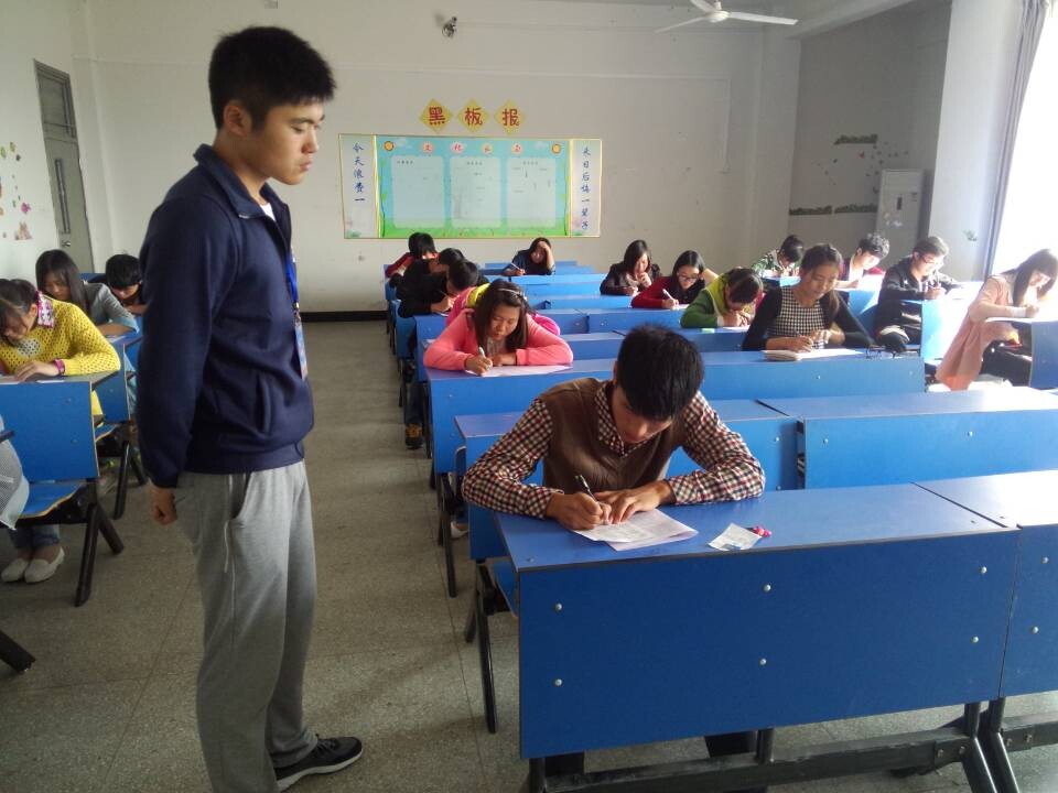 10月14日中午,食品系2014年学生会招新笔试在2号教学楼举行。系团总支书记到现场查看学生考试与组织情况。