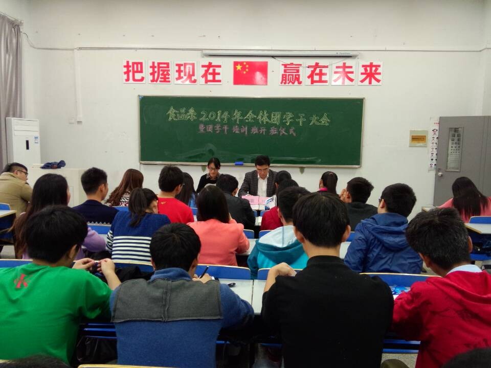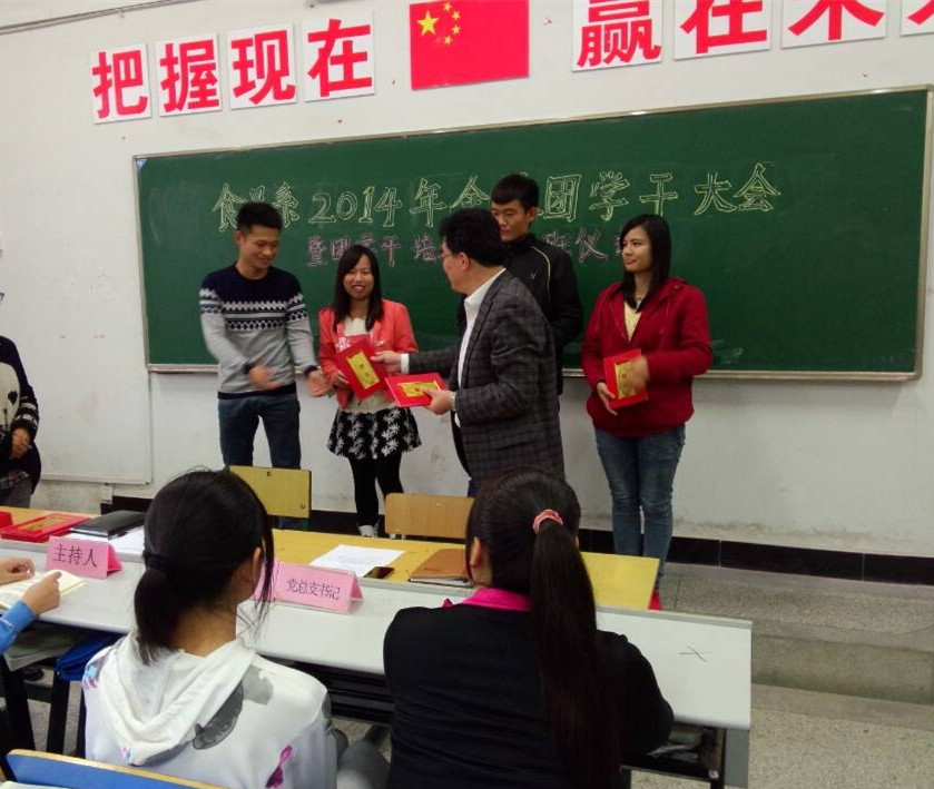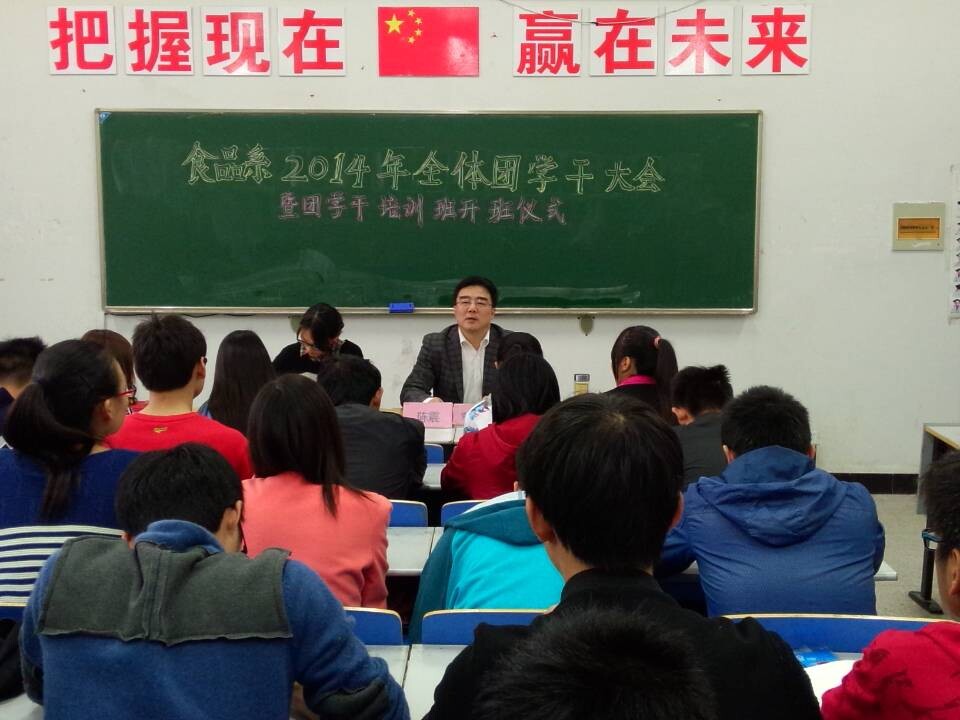 近日,食品系2014年全体团学干大会暨团学干培训班开班仪式在2113教室隆重举行。会议由系团总支书记主持,系党总支书记陈震参加会议并做专题讲座。