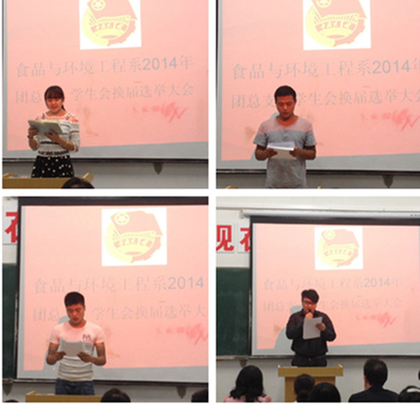 2014年换届工作的圆满完成,为食品系十一后团总支学生会招新、日常学生管理及校园文化建设等工作打下基础。希望换届与招新的东风能让食品系团总支、学生会学年工作迈上新台阶、展示新形象。