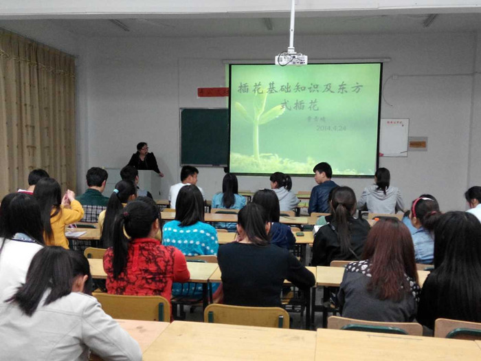 为增强社员对插花艺术的了解,食品与环境工程系“花艺社”近日举办了《东方插花艺术》专题讲座,讲座由社团指导老师贾雪晴主讲。