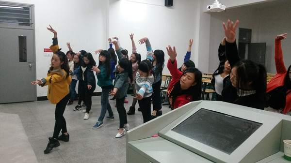 学生认真参加舞蹈排练