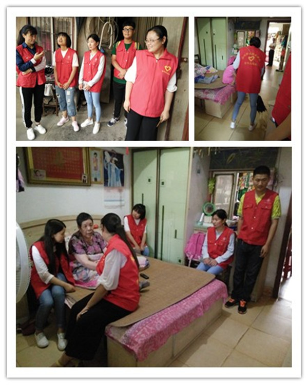 踏着清晨的第一缕阳光,小分队成员们从校园出发前往紫南社区并在社区工作人员的带领下,来到瘫痪老人家中,开展志愿服务活动。首先,同学们帮助老人打扫房间,整理物品、拖扫地面、清除垃圾。接着,志愿者们围坐在老人身边,陪老人聊天解闷,简陋却温馨的小屋内久久回荡着欢快的笑声。老人用慈祥可亲的目光看着热情贴心的孩子们,这青春与夕阳的美丽画面让人动容。