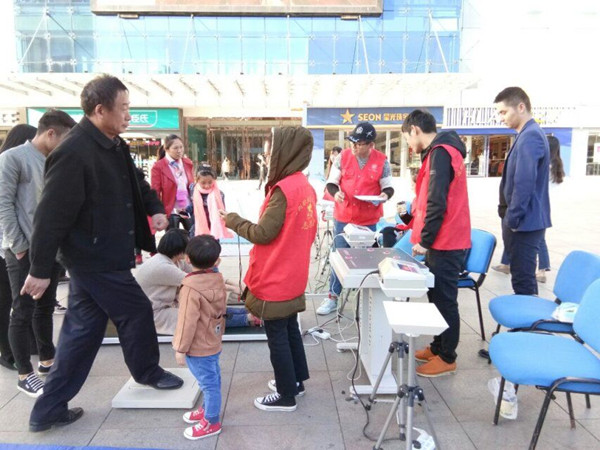 4日至5日,食环系志愿者们准时来到金鹏99广场指定岗位,对过往市民进行包括身高、体重、握力、纵跳、肺活量、台阶测试、俯卧撑、仰卧起坐、坐位体前屈、闭眼单脚站立、坐位体前屈等项目的测试,全面分析出被监测者的身体体质状况,发现身体机能的缺陷,以便进行及时的锻炼与调养,全面增强体质。我系志愿者们不怕辛苦,任劳任怨,热情服务,从早上八点一直工作到晚上五点,他们的志愿精神获得参与体侧市民的一致认可和赞扬。