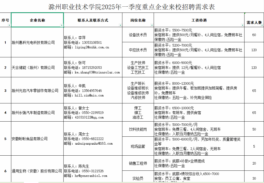 Beat365唯一官方网站2025年一季度重点企业来校招聘需求表
