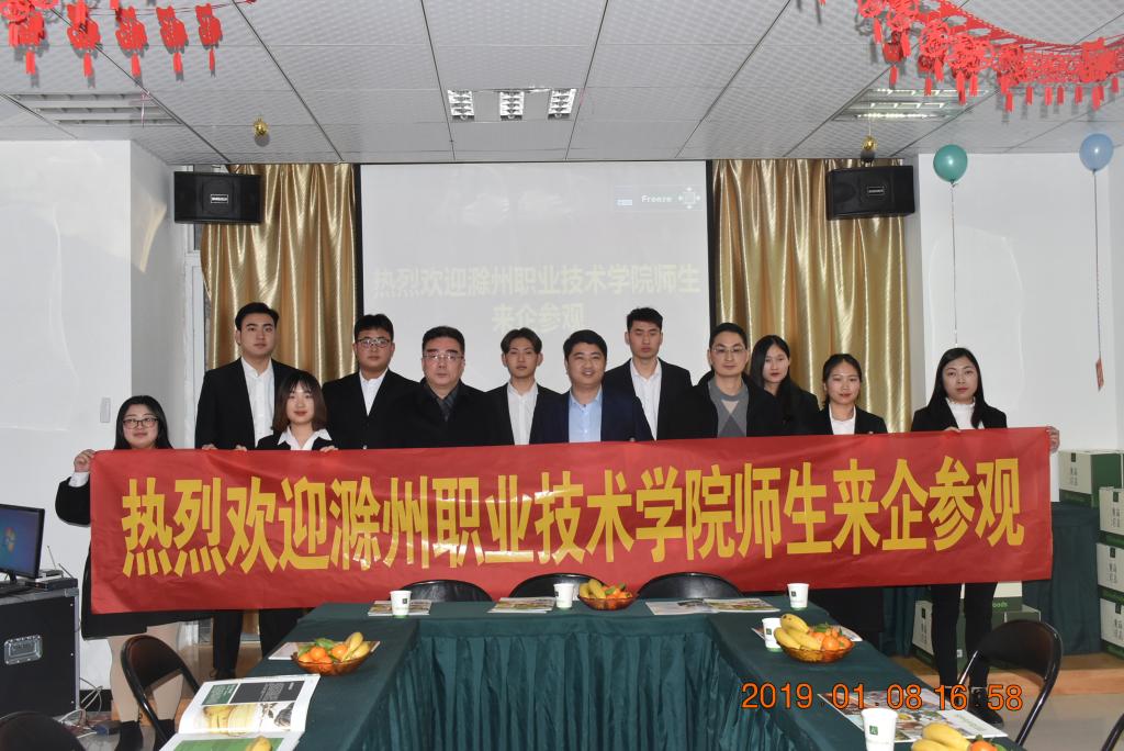 为进一步掌握2019届毕业生实习情况,加强校企合作,2019年1月8日,食环系党总支书记陈震、副主任梁建军及教学秘书孟飞一行3人赴垦荒人(安徽)科技有限公司滁州分公司看望食品专业7名实习生并举行校外实习就业基地挂牌仪式。
