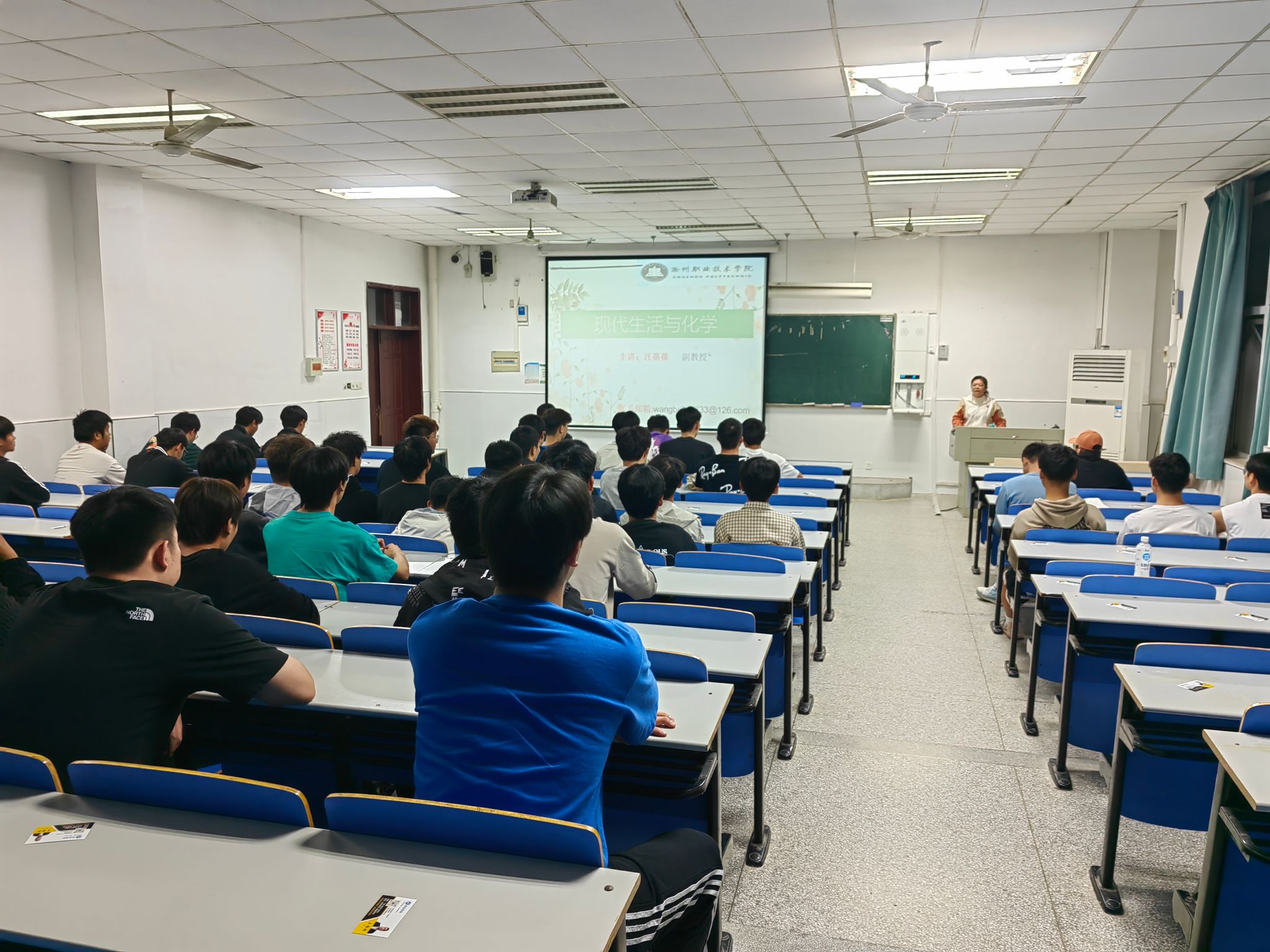 10月18日下午,食品与环境工程学院应用化工系汪蓓蓓老师在1116阶梯教室举办了一场题为“现代生活与化学”的专题讲座。应用化工技术专业及相关专业学生参加了此次讲座。
