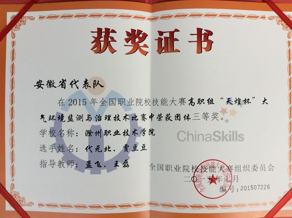 74,全国高职院校职业技能大赛“大气环境监测与治理技术”赛项在天津现代职业技术学院落下帷幕,Beat365唯一官方网站食品与环境工程系2013级高分子材料专业学生代元北、贾豆豆喜获此次比赛三等奖,为Beat365唯一官方网站再添一项国家级殊荣。