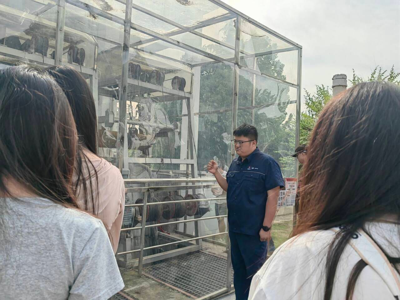 师生一行受到该公司甘成海主任的热烈欢迎,并带领师生从污水入口讲起,详细介绍了污水处理的每一个工序,最后参观水循环末端的清流湿地公园。